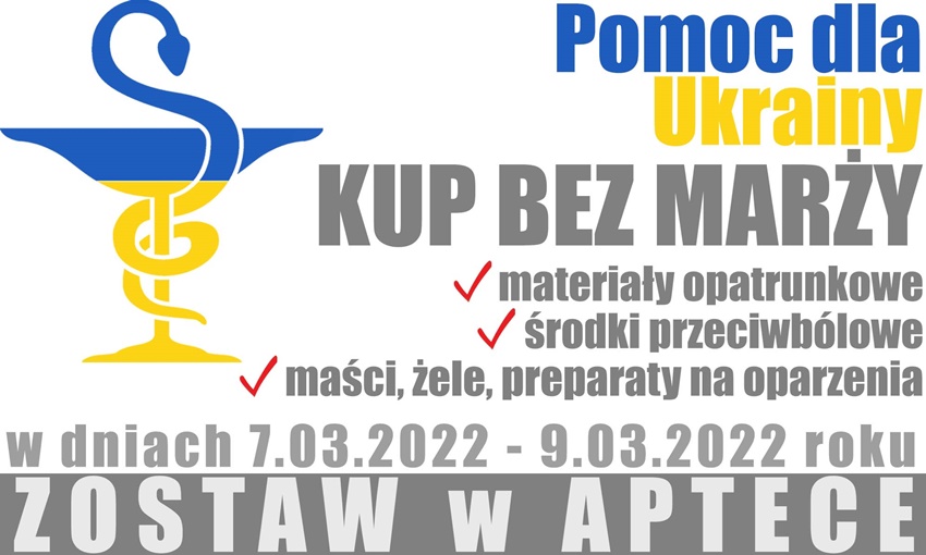 Zakupione produkty należy zostawić we wskazanych punktach aptecznych. Zostaną one przekazane potrzebującym obywatelom Ukrainy.