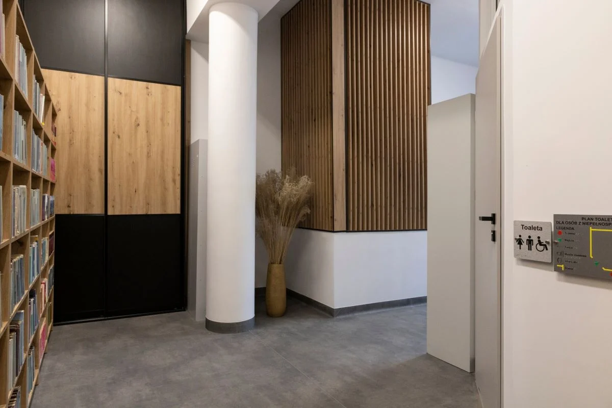 Modernizacja objęła wypożyczalnię, czytelnię dla dorosłych, biura, toalety, archiwum i pomieszczenie socjalne. Przebudowane zostały instalacje sanitarne, elektryczne i wentylacyjne. Pomieszczenia zostały ponadto przystosowane do potrzeb osób z niepełnosprawnościami. Wymienione zostały również meble, które teraz prezentują się nowocześnie i stylowo.
