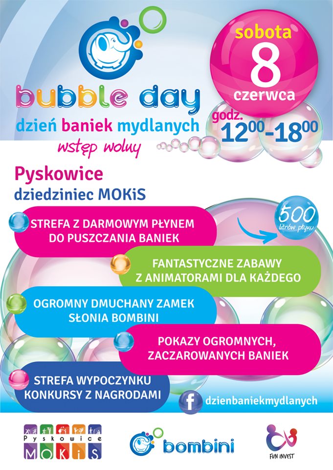Jedyny, wyjątkowy, fantastyczny, o nowej ulepszonej formule BUBBLE DAY czyli Dzień Baniek Mydlanych! Specjalnie dla Was ta impreza jest jeszcze lepsza.