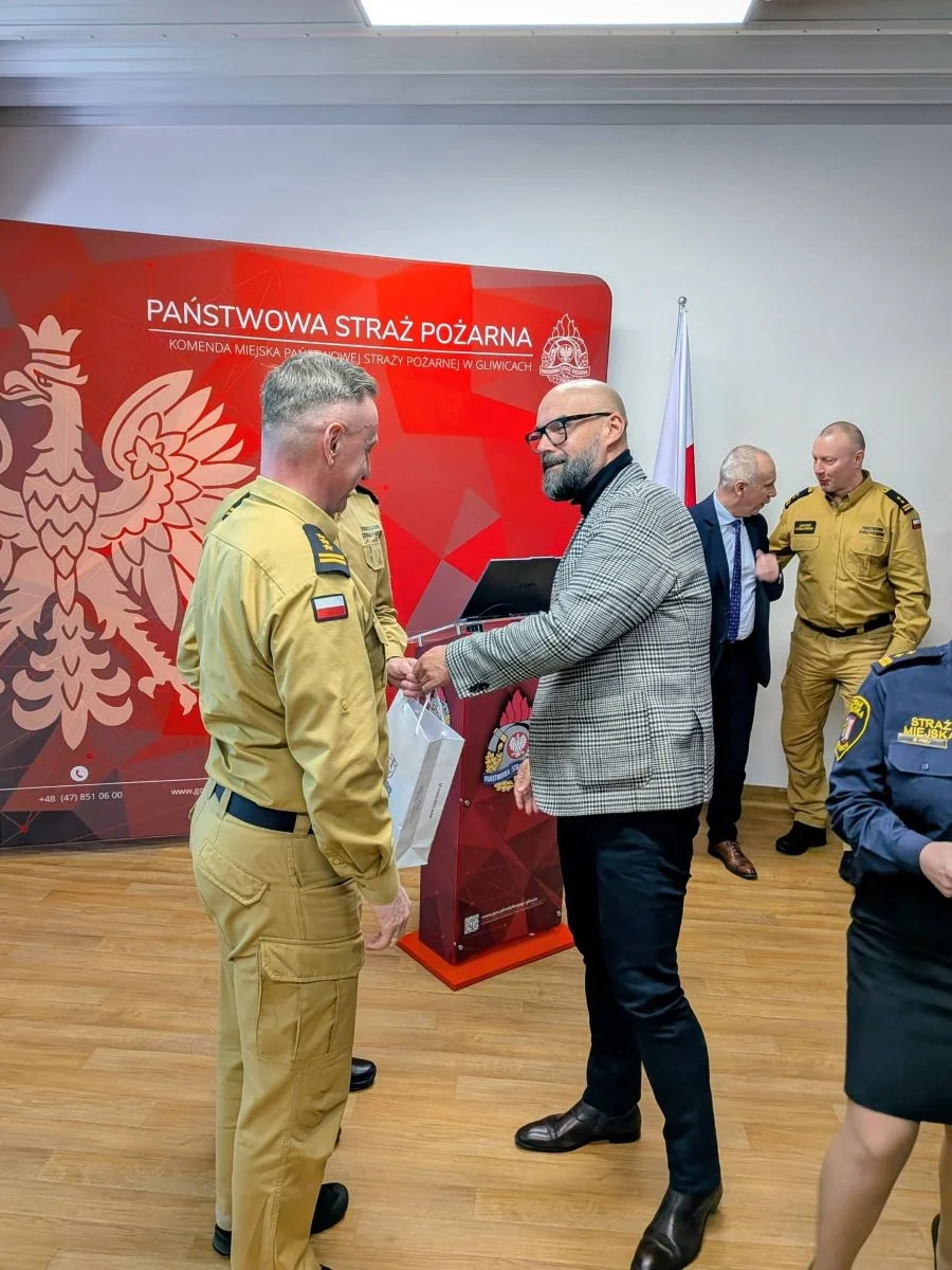 Podkreślił przy tym ogromne zaangażowanie służb i ich znaczenie dla bezpieczeństwa mieszkańców miasta Pyskowice i całego regionu.
