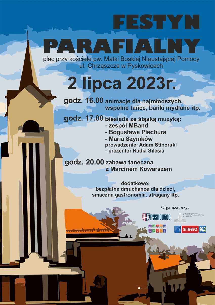 Festyn odbędzie się na placu, przy kościele pw. Matki Boskiej Nieustającej Pomocy, ul. Księdza Johannesa Chrząszcza, 44-120 Pyskowice.
