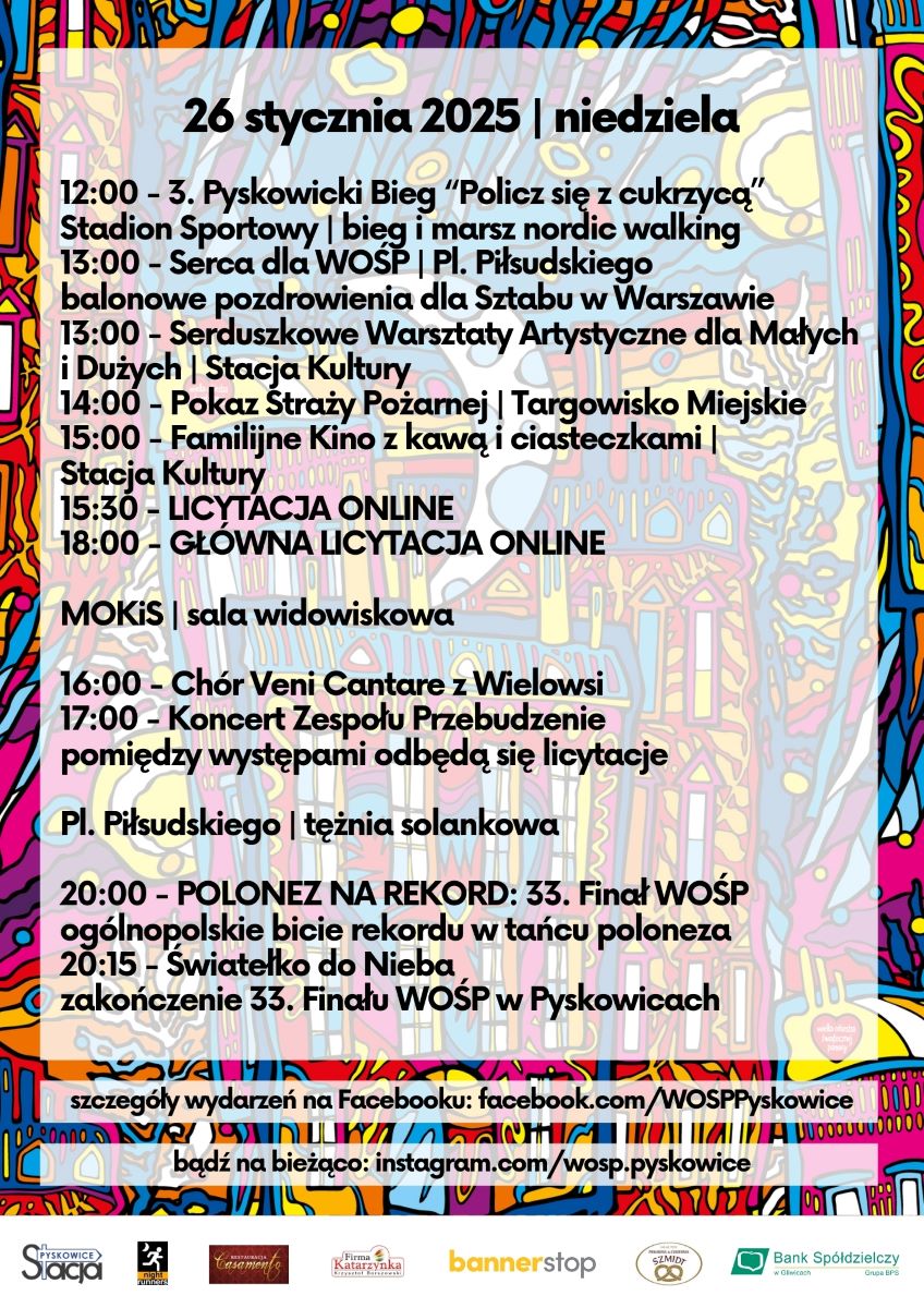 Znamy już pełny rozkład jazdy przygotowany przez Sztab WOŚP Pyskowice na 33. Finał WOŚP.
