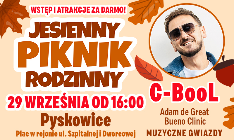 W najbliższy piątek, 29 września Plac Dożynkowy w Pyskowicach zamieni się w centrum rozrywki podczas „Jesiennego Pikniku Rodzinnego”.