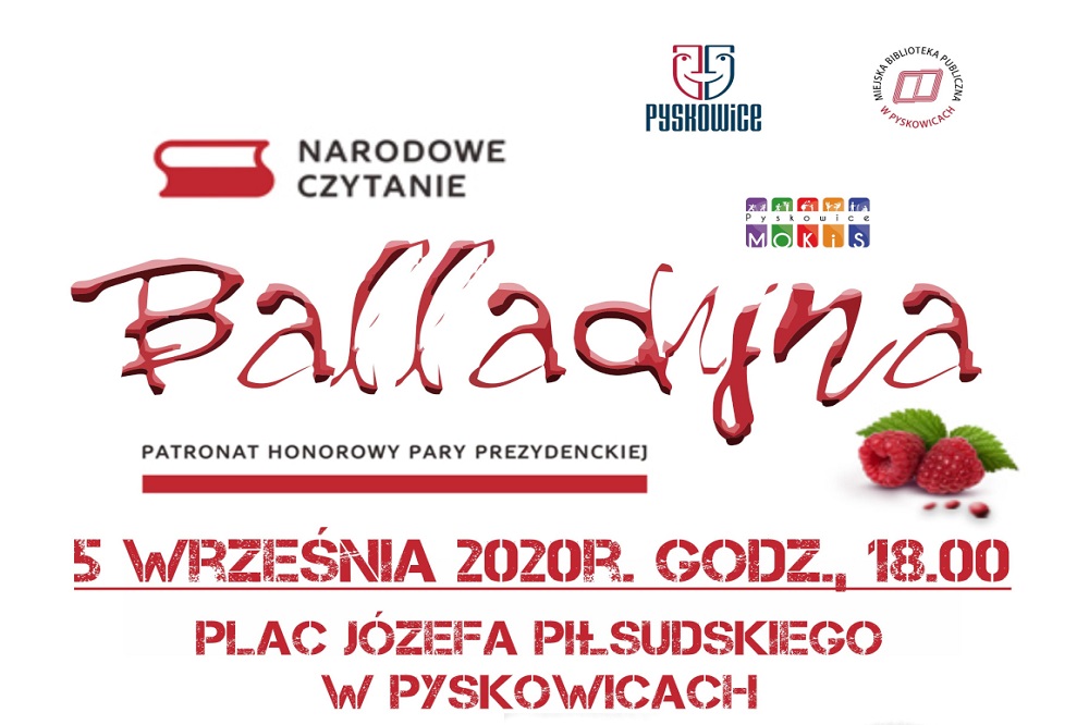 Samorząd Pyskowic oraz Miejski Ośrodek Kultury i Sportu zapraszają na narodowe czytanie dramatu Juliusza Słowackiego „BALLADYNA”.