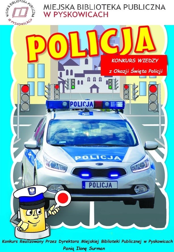 Miejska Biblioteka Publiczna w Pyskowicach zaprasza wszystkie chętne dzieci do wzięcia udziału w zabawie konkursowej z okazji Święta Policji.