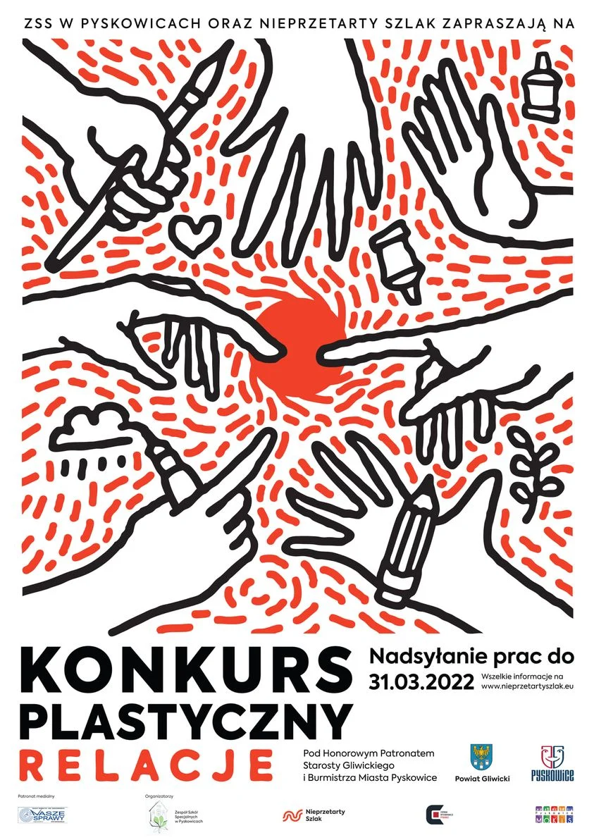 Zaprasza się do udziału w Konkursie Plastycznym „Relacje” w ramach Cyklu Imprez Nieprzetartego Szlaku pod Honorowym Patronatem Starosty Powiatu Gliwickiego oraz Burmistrza miasta Pyskowice.