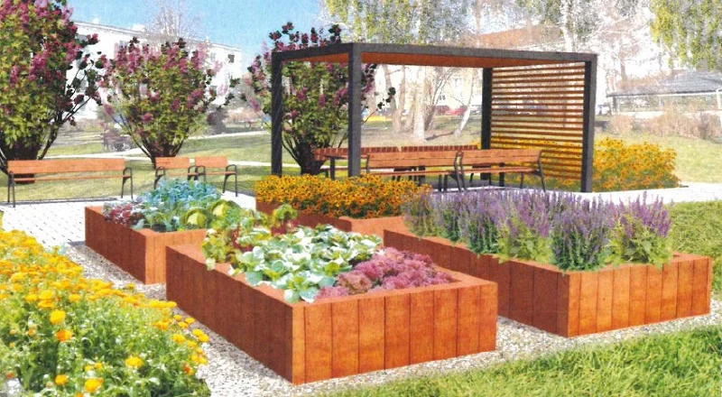 Nowe zagospodarowanie terenu przebiegnie dwuetapowo, a zakończenie rozpoczynających się właśnie prac zaplanowano na maj przyszłego roku. Docelowo pojawią się donice pod uprawy, ławki, leżaki miejskiej, pergola, lampy solarne. Zakres robót obejmuje również uporządkowanie placu, odnowienie trawnika i nasadzenia (krzewów, kwiatów, bylin, drzew).