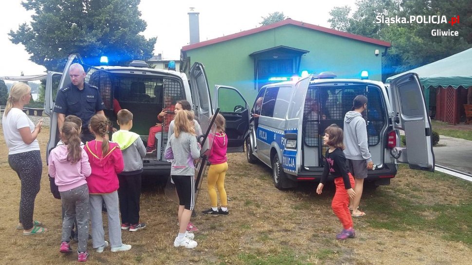 Dzielnicowi z komisariatu policji w Pyskowicach wraz z profilaktykami z gliwickiej komendy odwiedzili dzieci biorące udział w koloniach na terenie ośrodka mieszczącego się nad jeziorem Dzierżno Małe. Dzieci mogły zapoznać się z wyposażeniem, którym na co dzień dysponują policjanci. Organizatorka kolonii została nagrodzona przez gliwickich stróżów prawa, pamiątkowym prezentem za wielokrotne reagowanie na niebezpieczne lub nieodpowiedzialne zachowanie nad wodą.