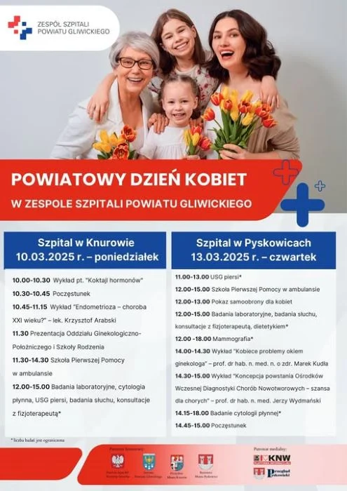 Z okazji zbliżającego się Dnia Kobiet Zespół Szpitali Powiatu Gliwickiego organizuje specjalne wydarzenie. W ramach „Powiatowego Dnia Kobiet” panie będą mogły skorzystać z bezpłatnych konsultacji, badań oraz warsztatów dotyczących zdrowia i profilaktyki. To doskonała okazja, by zadbać o siebie i poszerzyć swoją wiedzę na temat zdrowia kobiet.