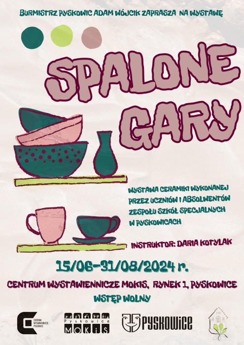 W okresie wakacyjnym MOKiS Pyskowice zaprasza do zwiedzania wyjątkowej wystawy prac uczniów oraz absolwentów Zespołu Szkół Specjalnych w Pyskowicach. Ekspozycja „Spalone Gary” to niezwykła kolekcja ceramiki wykonanej w ramach zajęć przysposabiających do pracy.