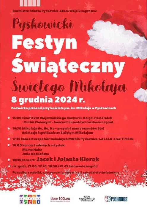 Poczuj magię świat już w najbliższą niedzielę, 8 grudnia. Wspólnie z MOKiS Pyskowice i Parafią pw. Świętego Mikołaja władze miasta zapraszają na Pyskowicki Festyn Świąteczny Świętego Mikołaja. Nie zabraknie specjalnych gości, upominków, kolęd, ale i szlagierów.