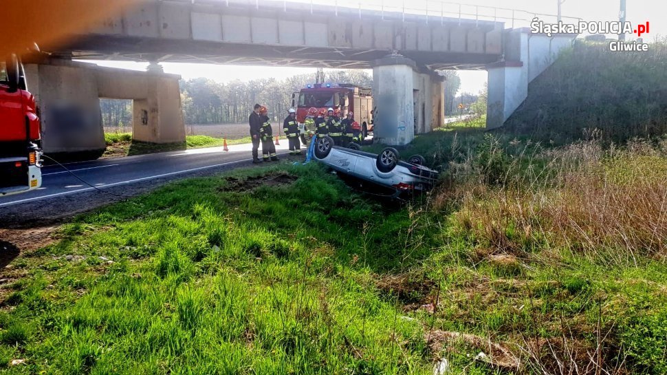 Jadący z Pyskowic kierowca skody, podczas skrętu w polną drogę, nie zauważył nadjeżdżającego z naprzeciwka forda i zderzył się z nim. Ford wpadł do rowu, dachował. Na szczęście nikomu nic się nie stało. W ciągu zaledwie kilku minut, ku zaskoczeniu samych uczestników, na miejsce przyjechali policjanci oraz strażacy z PSP Pyskowice i OSP Toszek. Jak się okazało, służby wiedziały o zdarzeniu, ponieważ w jednym z samochodów zadziałał system powiadamiania, który poinformował o zdarzeniu operatora numeru 112 z Wojewódzkiego Centrum Powiadamiania Ratunkowego w Katowicach. Kierowca auta przyznał, że zaraz po zderzeniu, będąc w szoku, nie pomyślał, by samemu wezwać pomoc. Zrobił to więc za niego system eCall.