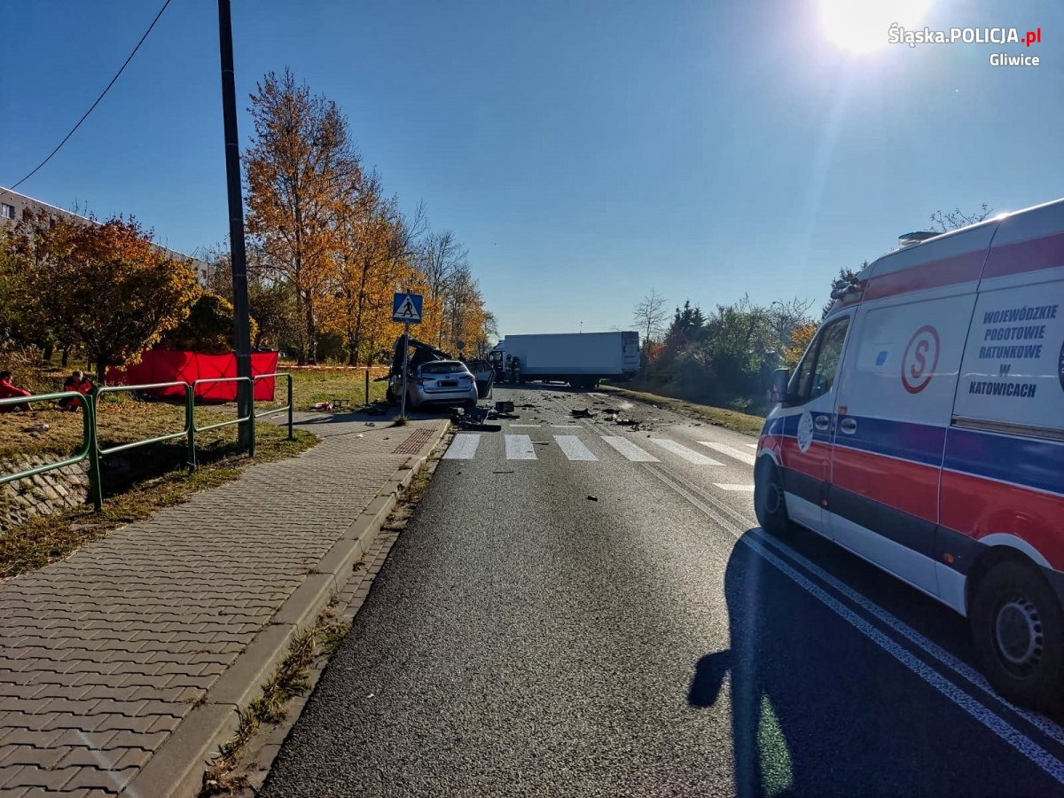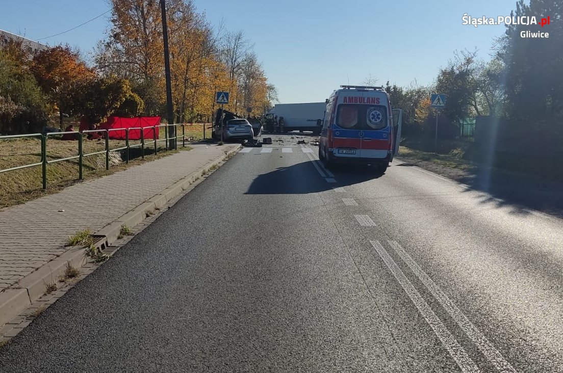 W piątek 29 października przed godziną 12.00 na ul. Poznańskiej w Pyskowicach doszło do tragicznego w skutkach wypadku drogowego. Ze wstępnych ustaleń wynika, że osobowa Toyota z niewyjaśnionych przyczyn zjechała na przeciwległy pas ruchu i zderzyła się z samochodem ciężarowym.