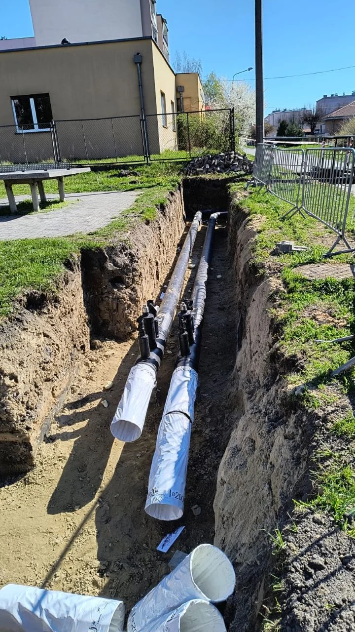 Równolegle toczą się prace w pomieszczeniach wymiennikowni w budynkach: Wieczorka 12, 14, 16, 18, 20, 22 oraz Szopena 9B, gdzie powstają nowoczesne, indywidualne węzły ciepłownicze. Po zakończeniu inwestycji ciepło do tych budynków będzie dostarczane sieciami wysokoparametrowymi, co oznacza lepszą efektywność energetyczną, mniejsze straty ciepła oraz większe bezpieczeństwo dostaw.