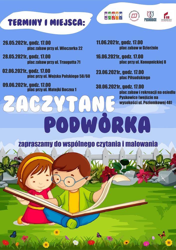 Miejska Biblioteka Publiczna oraz Miejski Ośrodek Kultury i Sportu w Pyskowicach zapraszają na plenerowe spotkania z książką i nie tylko.