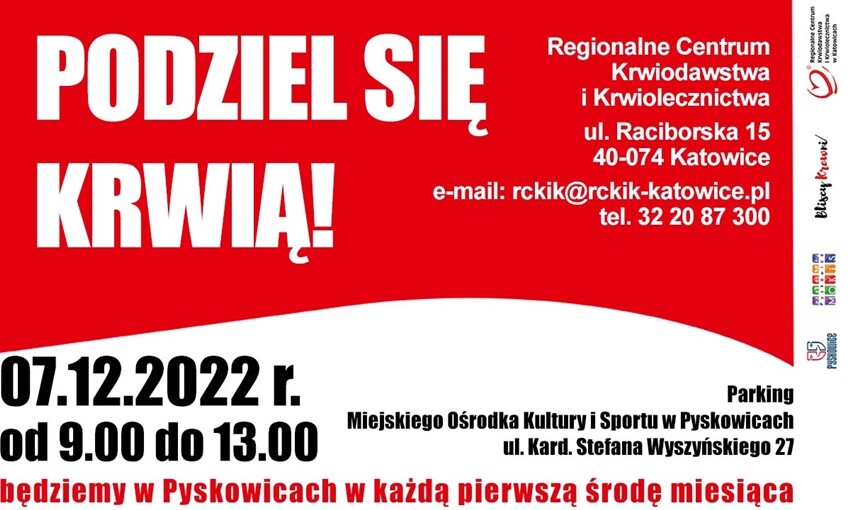W lutym rozpoczęto cykliczną akcję krwiodawstwa, na którą Urząd Miasta Pyskowice zaprasza w każdą pierwszą środę miesiąca.