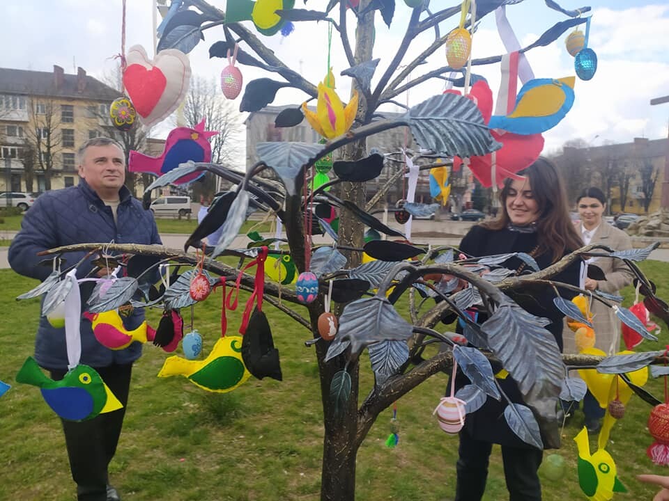 Najpierw wiosenne ozdoby szyli uczniowie ze Szkoły Sobotnio – Niedzielnej przy Towarzystwie Kultury Polskiej, potem dołączyli do nich włodarze miasta, m.in. mer Czerwonogradu Andrij Zaliwskij i jego zastępcy oraz przedstawicielki Towarzystwa Kultury Polskiej Ziemi Lwowskiej - Natalia Żuk i Irena Zając.