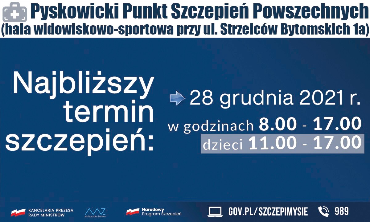 Już dzisiaj, 28 grudnia, w pyskowickim Punkcie Szczepień Powszechnych (PSP) będzie możliwość zaszczepienia dzieci w wieku od 5 do 11 lat przeciwko COVID-19. Czekać będą również szczepionki dla dorosłych.