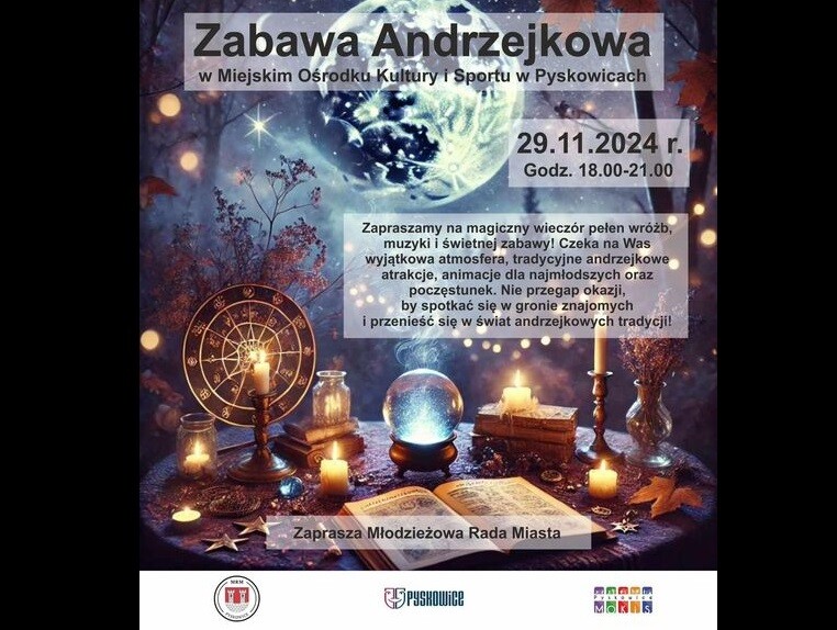 Władze miasta zapraszają w imieniu Młodzieżowej Rady Miasta Pyskowice na magiczny wieczór, pełen wróżb, muzyki i dobrej zabawy.