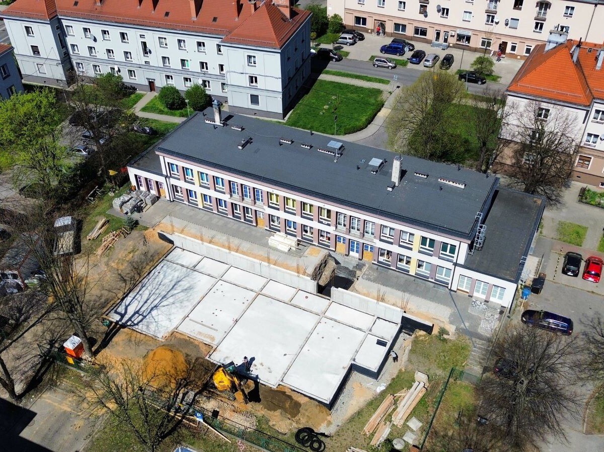 W Pyskowicach trwają prace rozbudowy Żłobka Miejskiego przy ul. Paderewskiego. W ramach inwestycji wykonano fundamenty pod dwa nowe oddziały, a kolejnym etapem będzie izolacja części podziemnej oraz budowa łącznika pomiędzy istniejącą częścią a nową.