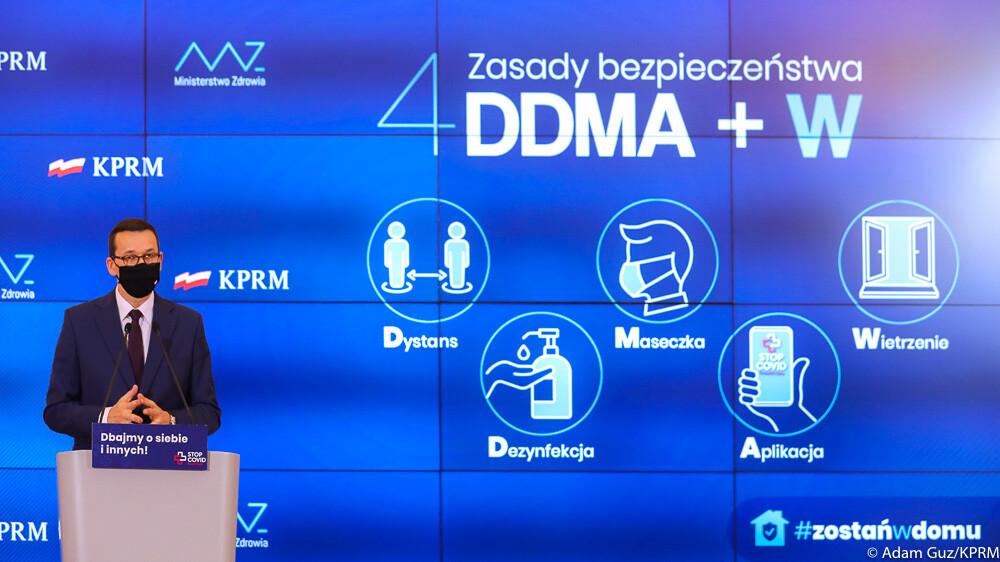 Szef rządu poinformował na konferencji prasowej, że cała Polska od soboty staje się strefą czerwoną.