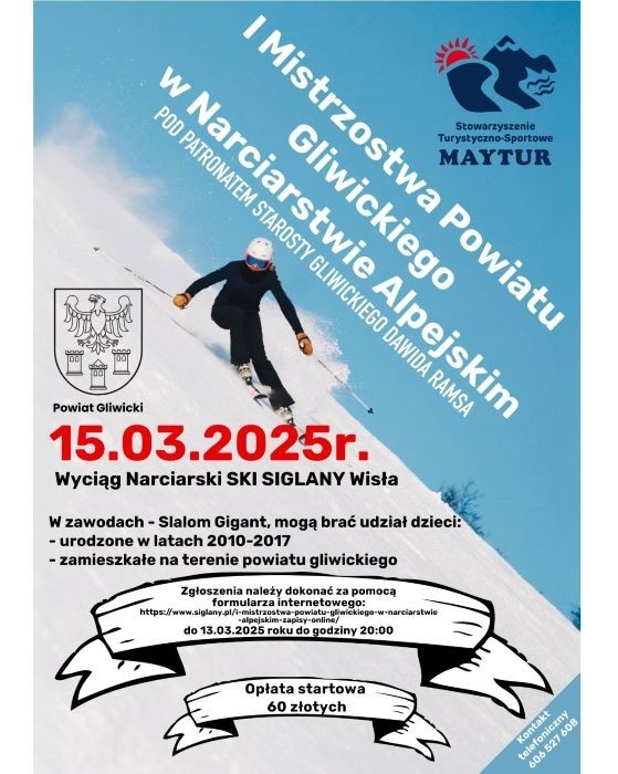 Już wkrótce odbędą się I Mistrzostwa Powiatu Gliwickiego w Narciarstwie Alpejskim dla dzieci w rocznikach 2010-2017 zamieszkałych na terenie powiatu gliwickiego!