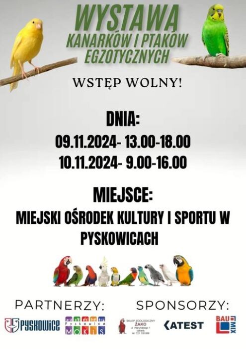 9 i 10 listopada w MOKiS Pyskowice będzie można podziwiać niezwykłe okazy ptaków z całego świata, spotkać pasjonatów i hodowców oraz dowiedzieć się więcej o fascynującym świecie ornitologii.