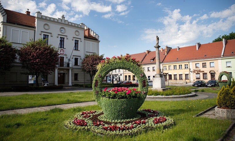 Na zielonym terenie przy kościele pw.Nawrócenia św. Pawła Apostoła wyrósł stożek z kwietną serwetą u podstawy, a na Placu Żwirki i Wigury kolorowa i pachnąca wieża. Pojawiły się też kosze i klomby na rynku, a już niedługo dojdą ostatnie elementy kwietnej dekoracji miasta, tak lubianej przez mieszkańców - herb na Placu Poniatowskiego oraz zielona palisada przy urzędzie miejskim.