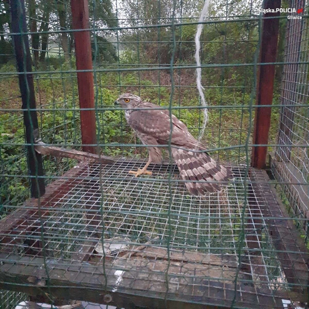 W sobotę policjanci z Pyskowic otrzymali zgłoszenie od strażnika leśnego, który w gminie Rudziniec, obok miejscowości Łącza znalazł specjalnie skonstruowaną klatkę. Mundurowi, którzy przyjechali na miejsce, potwierdzili zgłoszenie. W pułapkę wpadł młody jastrząb. Jako przynętę wykorzystano dwa żywe gołębie hodowlane. Zniewolony ptak został wypuszczony i wrócił do swojego środowiska. Policjanci poprosili strażaków ochotników z gminy Rudziniec o pomoc w demontażu nielegalnie ustawionej konstrukcji.