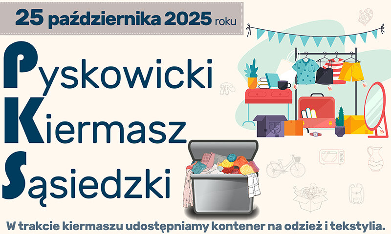 W sobotę, 25 października w godzinach 8:00–15:00 w Pyskowicach odbędzie się kolejna edycja Pyskowickiego Kiermaszu Sąsiedzkiego (PKS). To doskonała okazja, by dać drugie życie niepotrzebnym już przedmiotom, a przy okazji spotkać się z sąsiadami i wesprzeć ideę less waste.