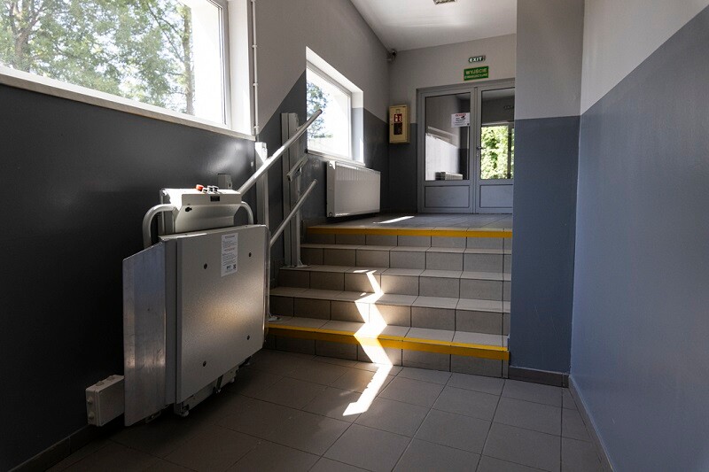 Pod tym samym kątem dostosowano również budynek hali - w łączniku ze szkołą pojawiła się platforma schodowa, wszystkie wejścia zostały wyposażone w pochylnie, „kładka” dla wózków inwalidzkich połączyła również parking ze ścieżką prowadzącą do areny.