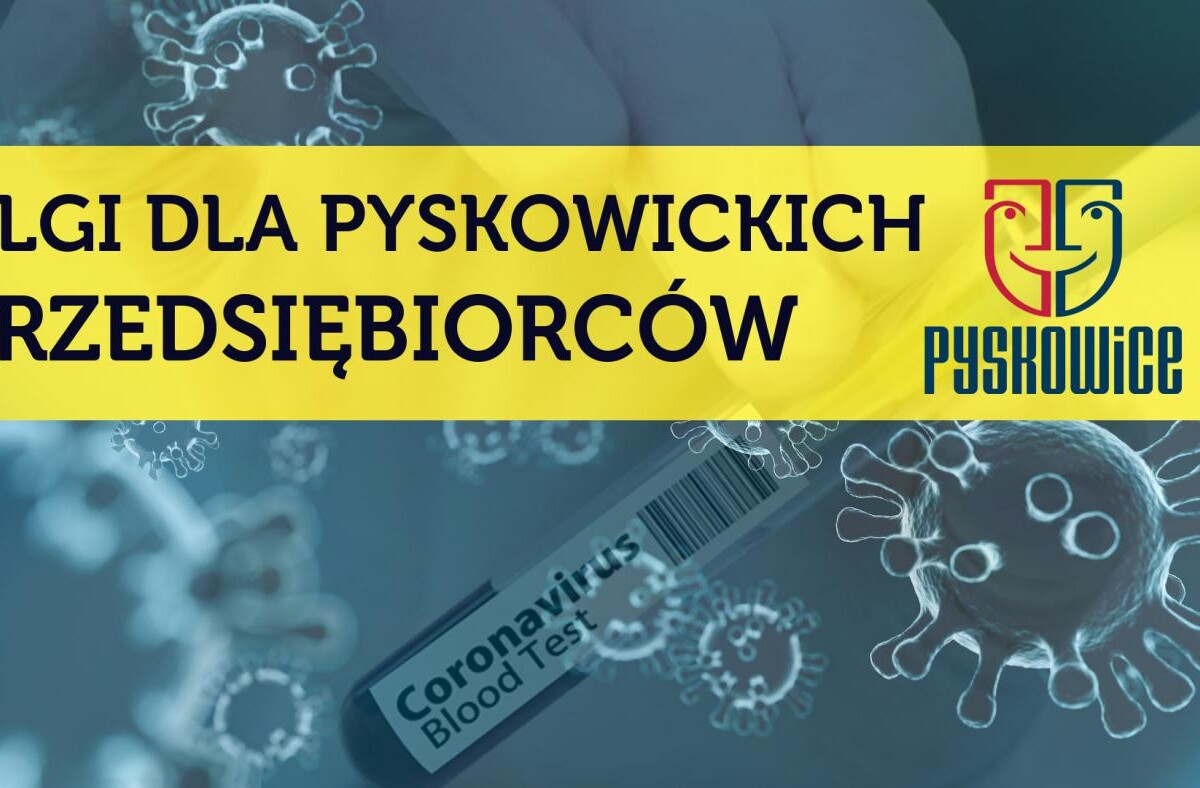 Więcej informacji na temat ulgi w zakładce KORONAWIRUS/WAŻNE INFORMACJE/ULGI DLA PYSKOWICKICH PRZEDSIĘBIORCÓW
