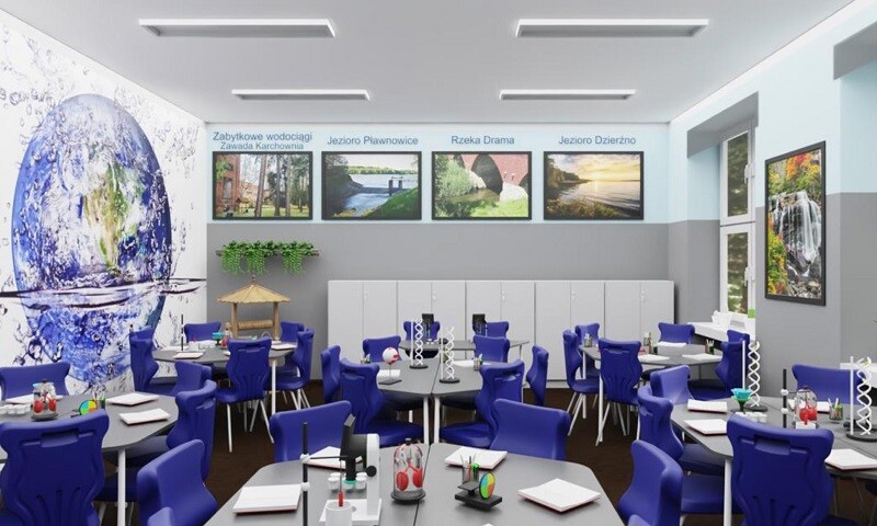 Sala zostanie wyposażona w funkcjonalne meble, fototapetę i dekoracje inspirowane naturą, by nauka była jeszcze ciekawsza.