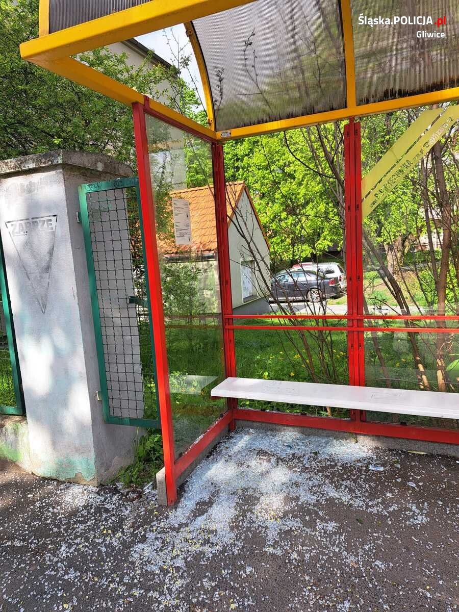 7 maja o godz. 6:55 policjanci z IV komisariatu przyjęli zgłoszenie o wandalu niszczącym wiatę przystankową przy ul. Strzelców Bytomskich w Gliwicach. Pilnie ruszyli na interwencję i zatrzymali sprawcę na gorącym uczynku.
