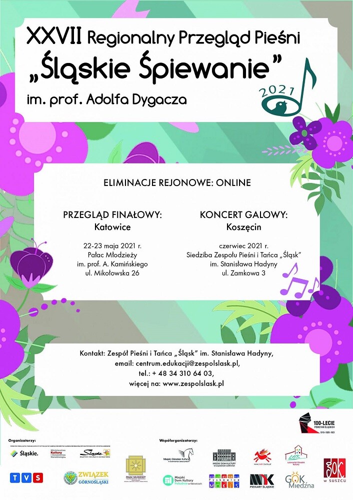 Regulamin, linki do śpiewników oraz link do Elektronicznej Karty Zgłoszenia (aktywny od 10 marca 2021r.) znajdują się na stronie internetowej Zespołu Pieśni i Tańca "Śląsk" www.zespolslask.pl