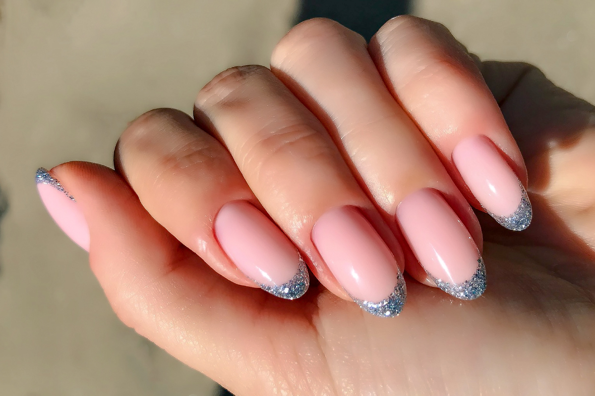 - Klasyczny french – delikatny i elegancki, pasuje niemal do każdej ślubnej stylizacji. Możesz go nieco unowocześnić, na przykład decydując się na french z brokatem.
